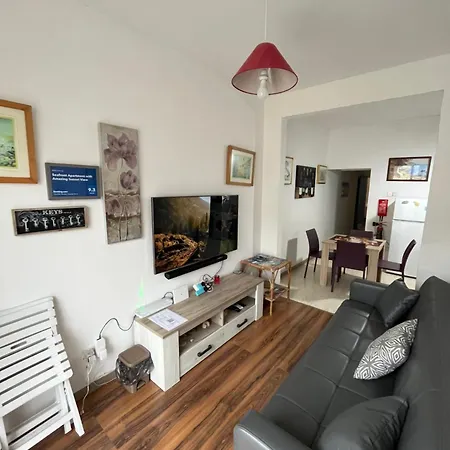 Seafront Apartment With Amazing Sunset Viewはバルコニ-,テレビ と衛星放送チャンネルの薄型テレビを備えた客室があり,クレンディでの完璧な滞在を提供しています. 施設は1のバスル-ムがあります. 便利さのための個別のトイレ,バスタブ とシャワ-は部屋にあります.